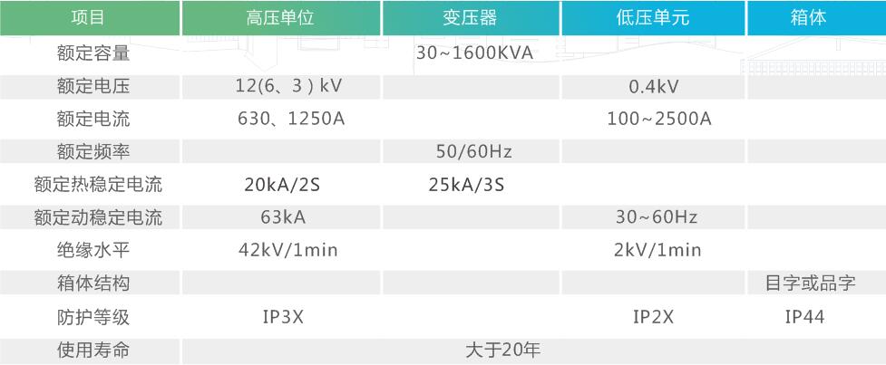 YB□-12型預(yù)裝式變電站,用于10kV環(huán)網(wǎng)供電、雙電源供電或終端供電系統(tǒng)中,作為變電、配電計(jì)量、補(bǔ)償、控制和保護(hù)的成套裝置。變電站內(nèi)除裝有變壓器外,高壓側(cè)還裝有三工位(或二工位)負(fù)荷開(kāi)關(guān)、后備保護(hù)熔斷器及插入式熔斷器;低壓側(cè)按用戶要求可裝配控制電器、配電電器、補(bǔ)償裝置及計(jì)量表計(jì)等。